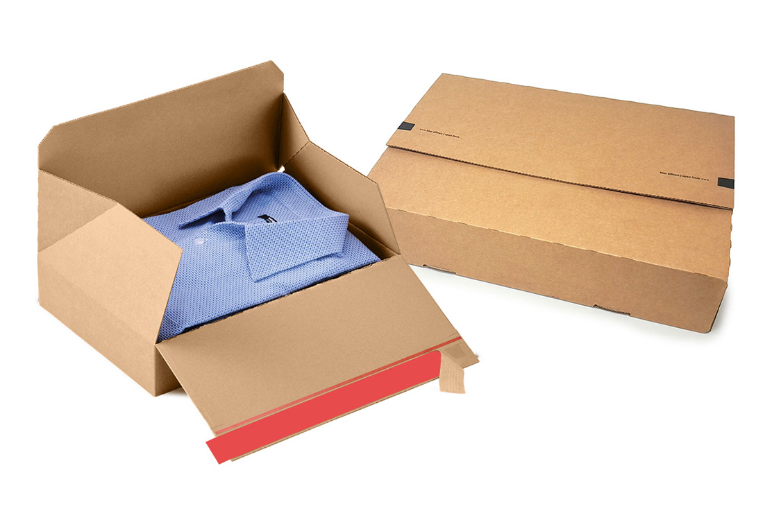 - Carton auto-adhésif en simple cannelure à couverture kraft pour une meilleure résistance.