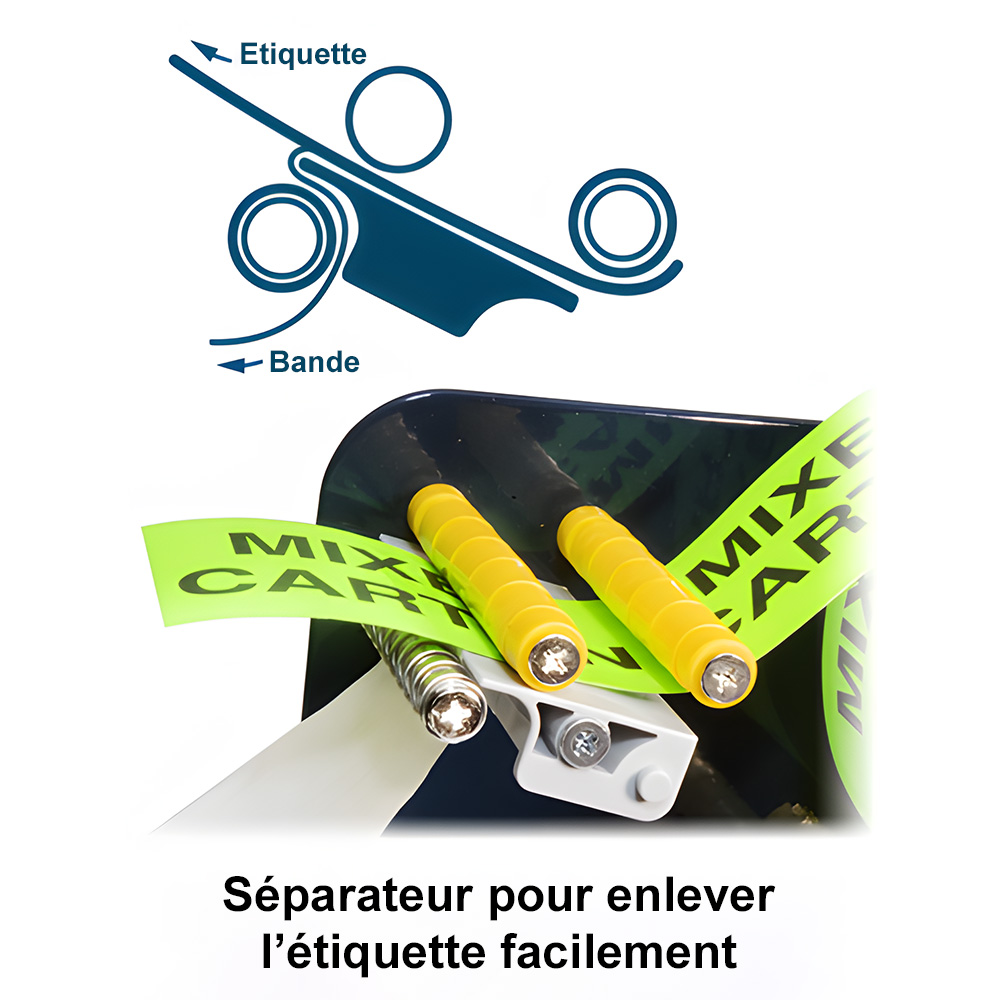 - Sépare automatiquement les étiquettes de leur support siliconé.