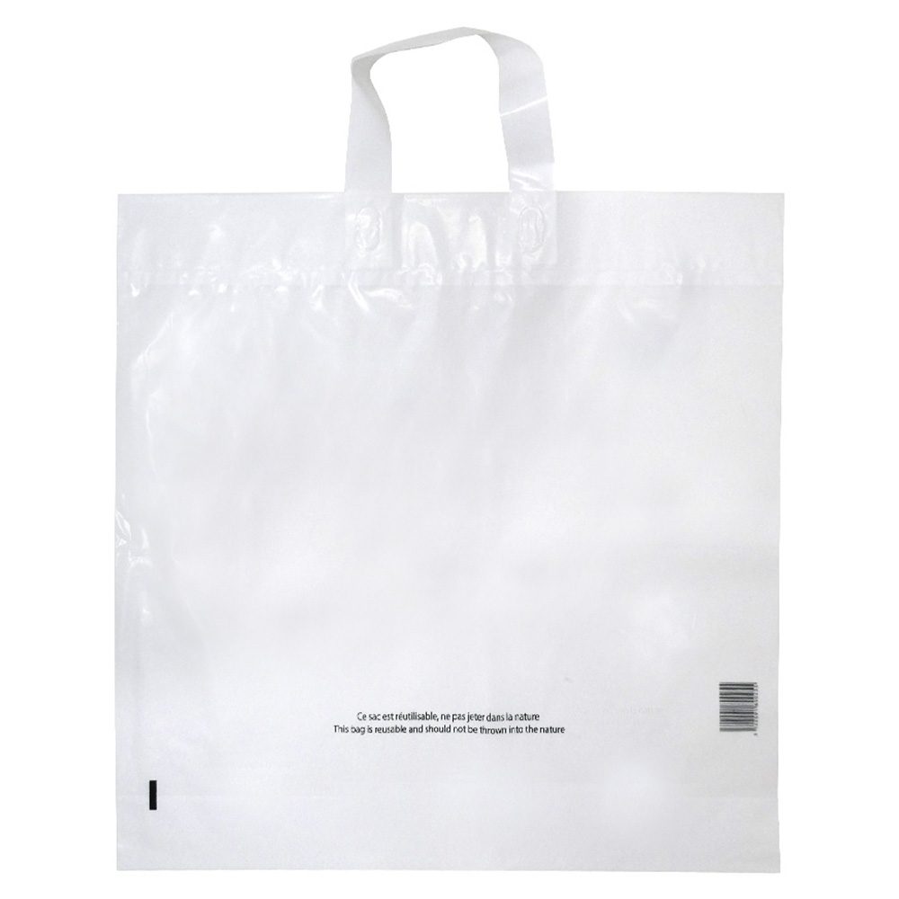 1/ Sacs plastiques à poignées souples soudées - Blanc opaque