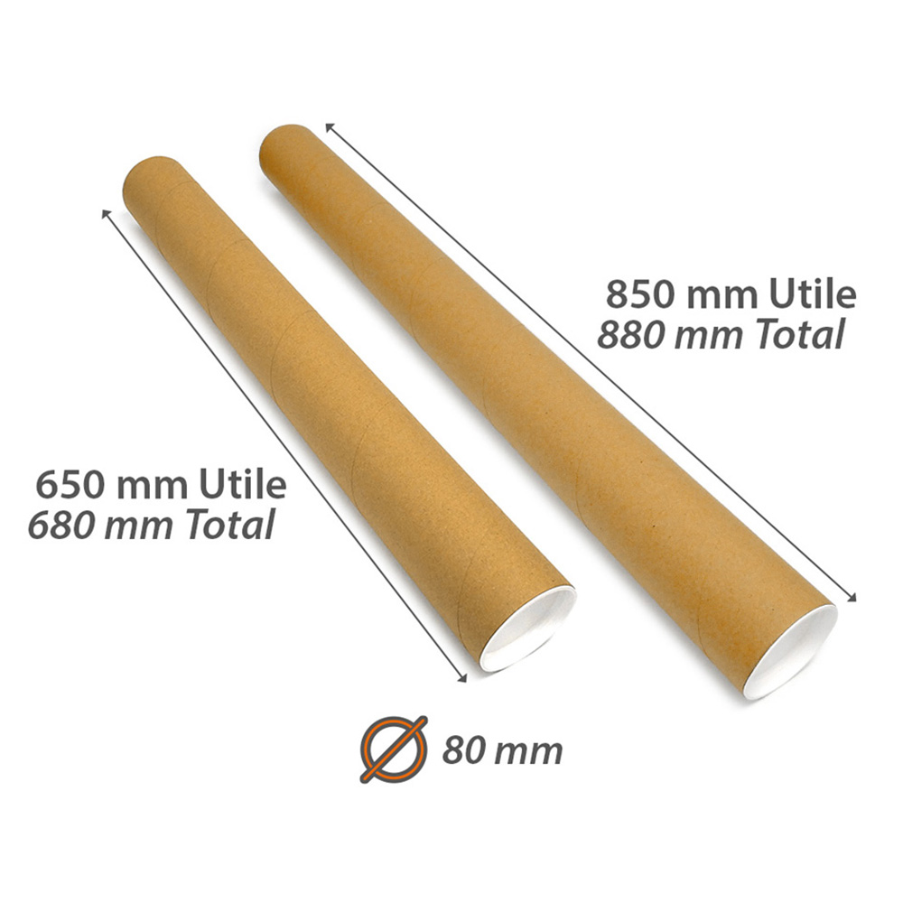 Tube carton d'emballage + bouchons - Ø int. 80 mm - Long. Utile 850 mm